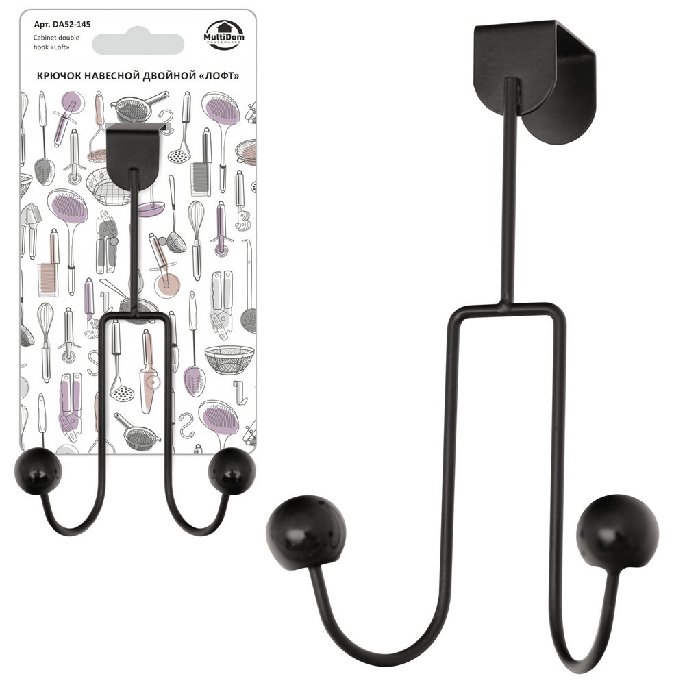 Крючок навесной двойной "Лофт". Размер 10х11х18,5 см. Материал: Металл (Проволока), Металл (Сталь с эмалевым покрытием), Пластмасса (PP)
