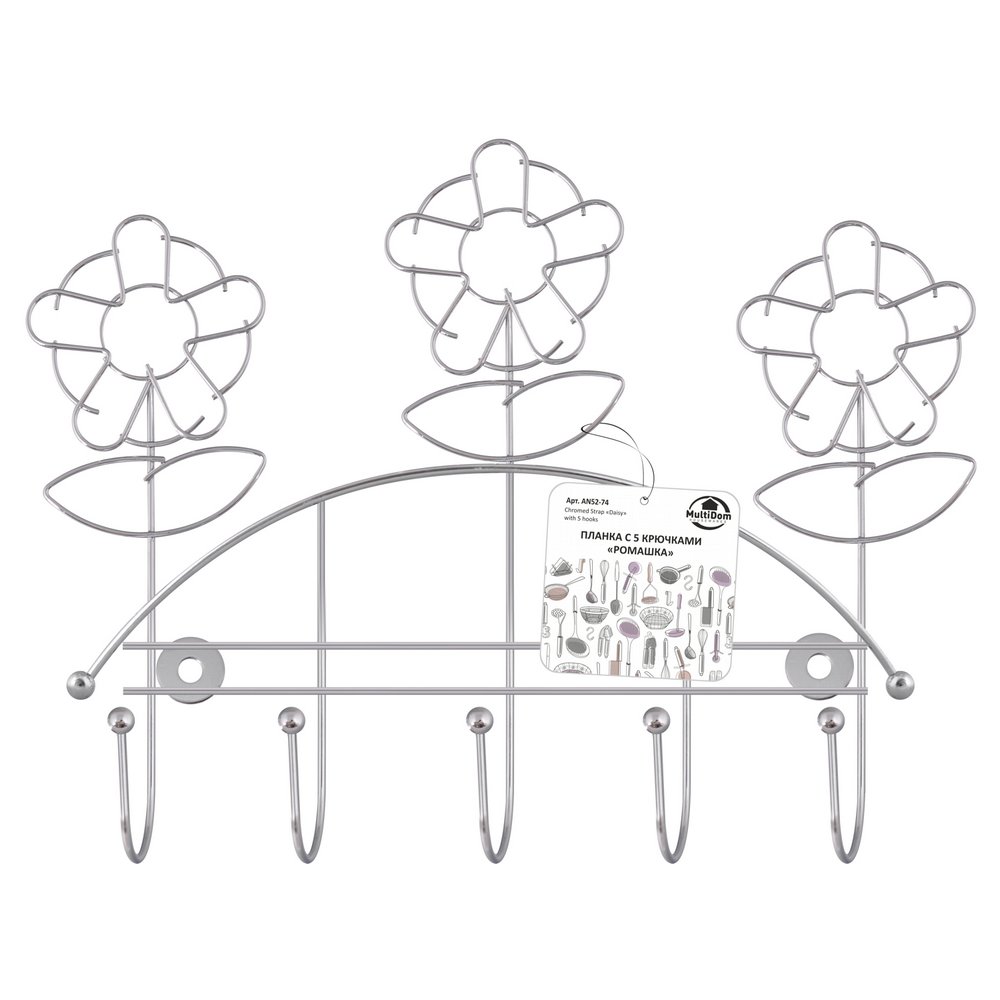 Планка 5 крючков "Ромашка". Длина 24 см. Материал: Металл (Сталь хромированная)