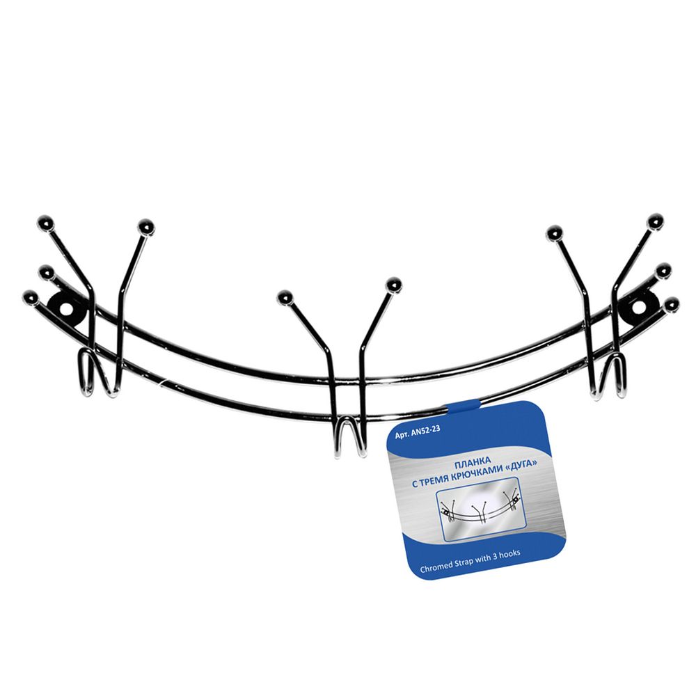 Планка с крючками (3 штуки "Дуга"). Длина 29 см. Материал: Металл (Сталь хромированная)