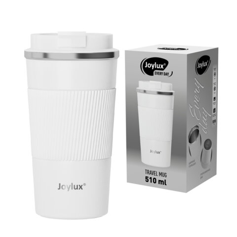 Термокружка 510 мл JOYLUX (ДЖОЙЛЮКС) EVERY DAY, нержавеющая сталь SUS304, силиконовый рукав, белый матовый, 700293