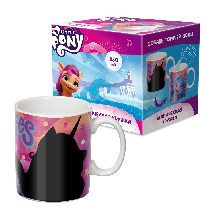 Оригинальная термокружка «My Little Pony: Новое поколение» ? готовый подарок для фанаток популярного мультфильма! Налейте 330 мл горячей воды в термокружку и подготовьтесь к волшебству! Новая картинка начнет появляться через пару секунд и уже через минуту проявится полностью. Когда кружка остынет, магия исчезнет вместе с проявившейся картинкой. Детская кружка отличается ярким дизайном, экологичными материалами и красителями. Подарочная упаковка надежно защищает кружку от повреждений. Фарфоровая кружка-хамелеон подходит для горячих и холодных напитков: воды, чая, сока и др. Не рекомендуем оставлять термокружку на солнце, использовать в СВЧ-печи или посудомоечной машине, и очищать с помощью жестких моющих средств.