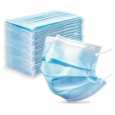 Маски одноразовые КОМПЛЕКТ 50 шт. медицинские 3-х слойные голубые (фильтр мельтблаун) SENSE, короб