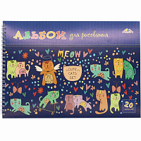 Альбом 20л. на гребне, мел.цв.обл."Разноцветные кошки"