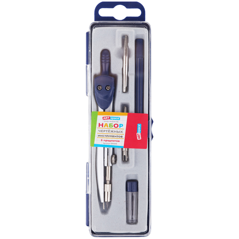Готовальня ArtSpace, 5 предметов, циркуль 115мм, пластиковый футляр, синяя