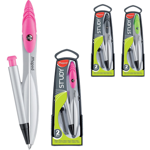 Циркуль MAPED (Франция) "Study", 120 мм, металлический, механический карандаш 0,5 мм+грифель, ассорти, пенал с европодвесом, 119430