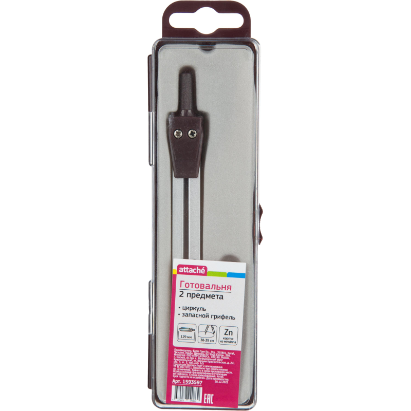 Готовальня Attache BF-A5 2пр/наб, циркуль 129 мм, серебр, пласт.пенал, европодвес