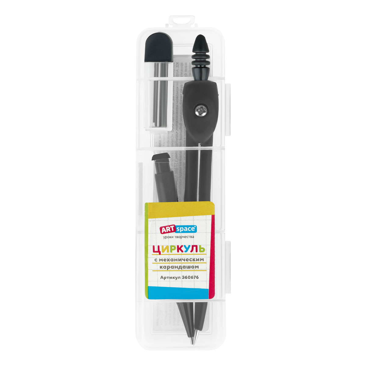Циркуль ArtSpace с механическим карандашом, 117мм, черный, с грифелями, в пластиковом пенале