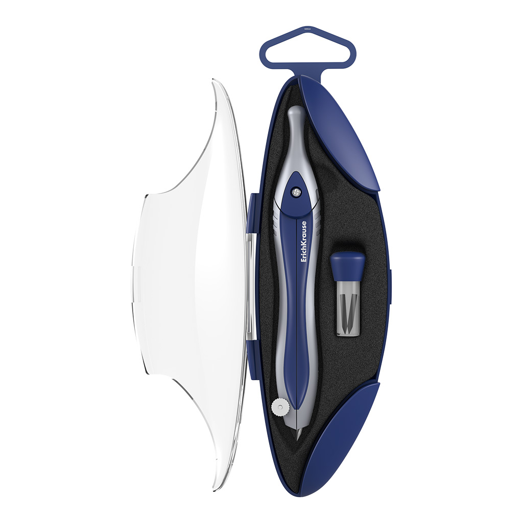 Готовальня Erich Krause Classic, (металлический циркуль и сменный грифель), пенал, синий