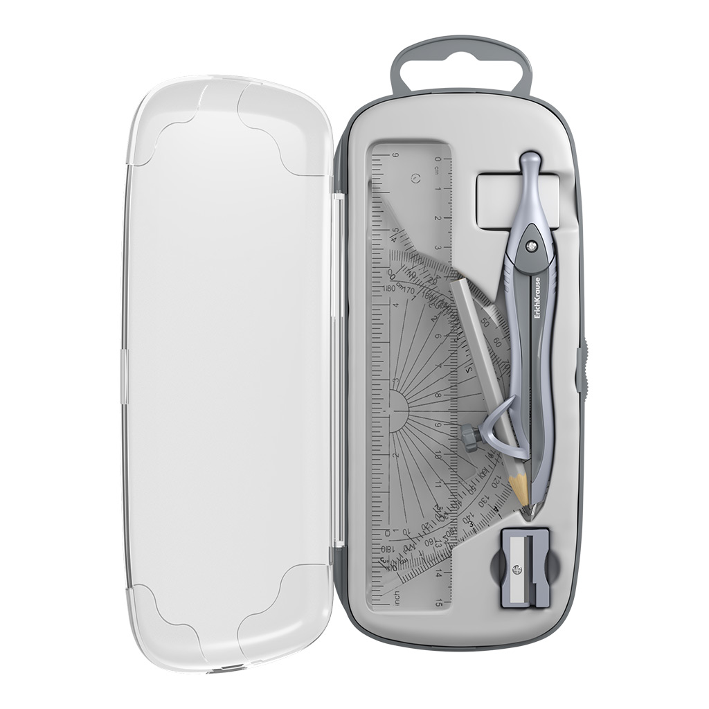 Готовальня Erich Krause Classic, 7 предметов, пенал, серый