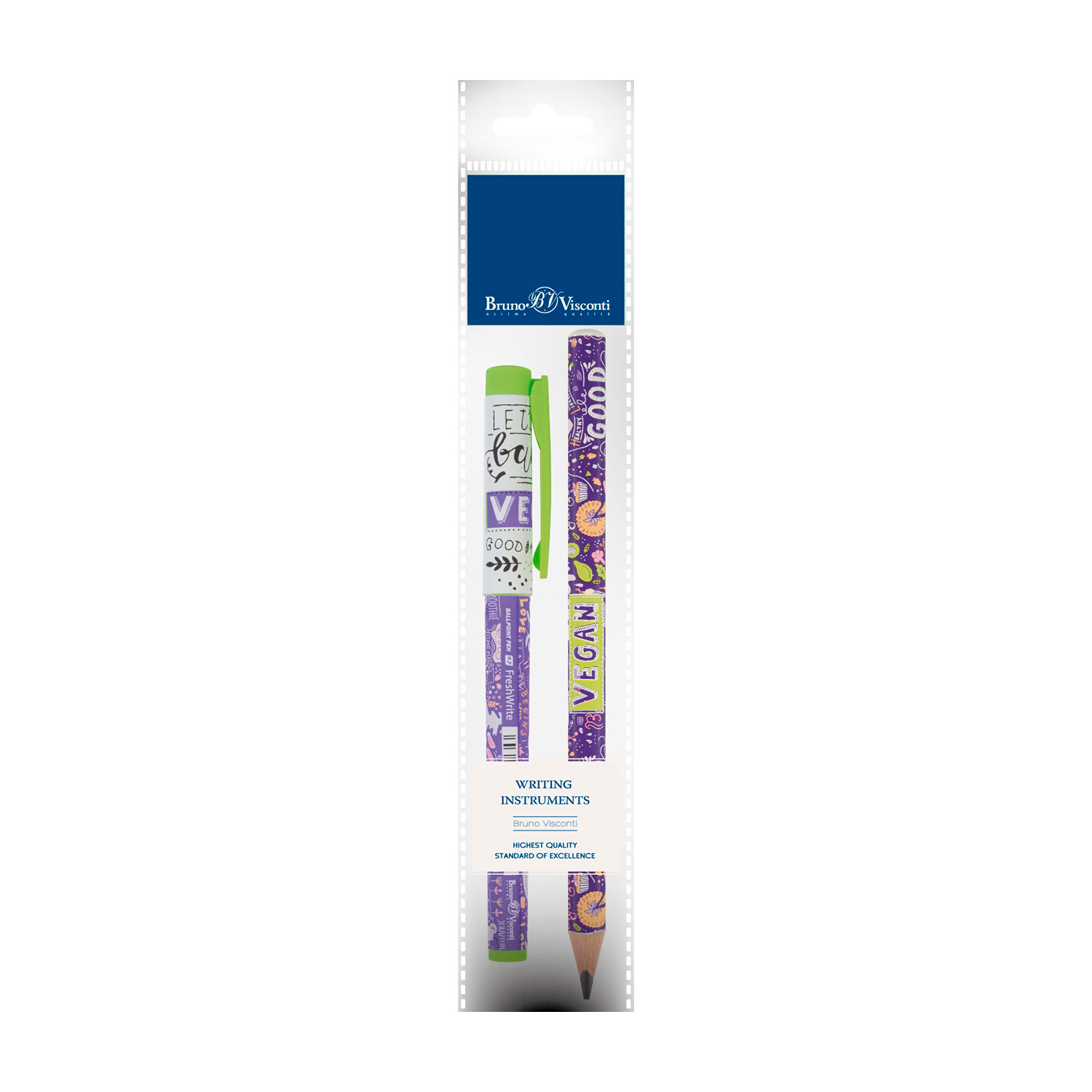 НАБОР: РУЧКА "FreshWrite" ШАР. 0.7 мм И КАРАНДАШ ЧЕРНОГРАФИТНЫЙ 4B "HappyGraphix Jumbo"Vegan. Черничный смузи