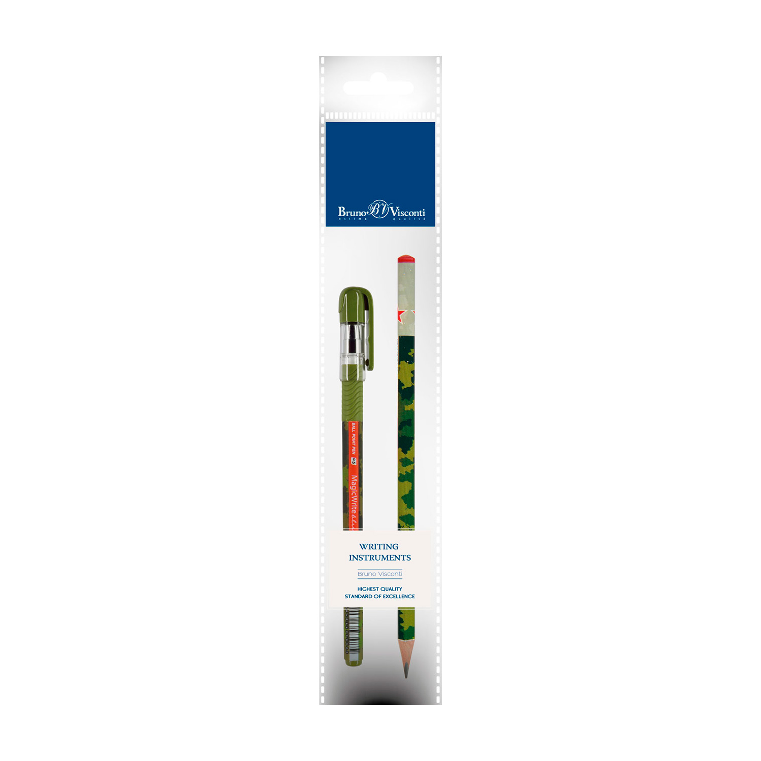 НАБОР: РУЧКА "MagicWrite" ШАР. 0.5 мм И КАРАНДАШ ЧЕРНОГРАФИТНЫЙ HB "HappyGraphix" Милитари