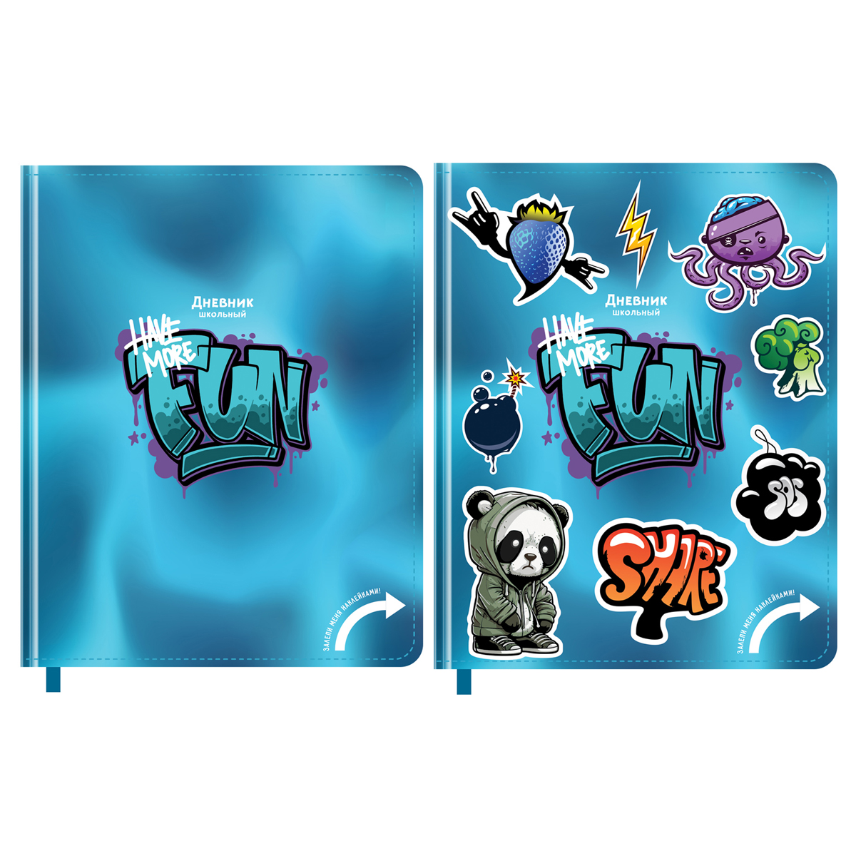 Дневник 1-11 кл. 48л. (твердый) BG "Fun", иск.кожа, печать, наклейки, ляссе