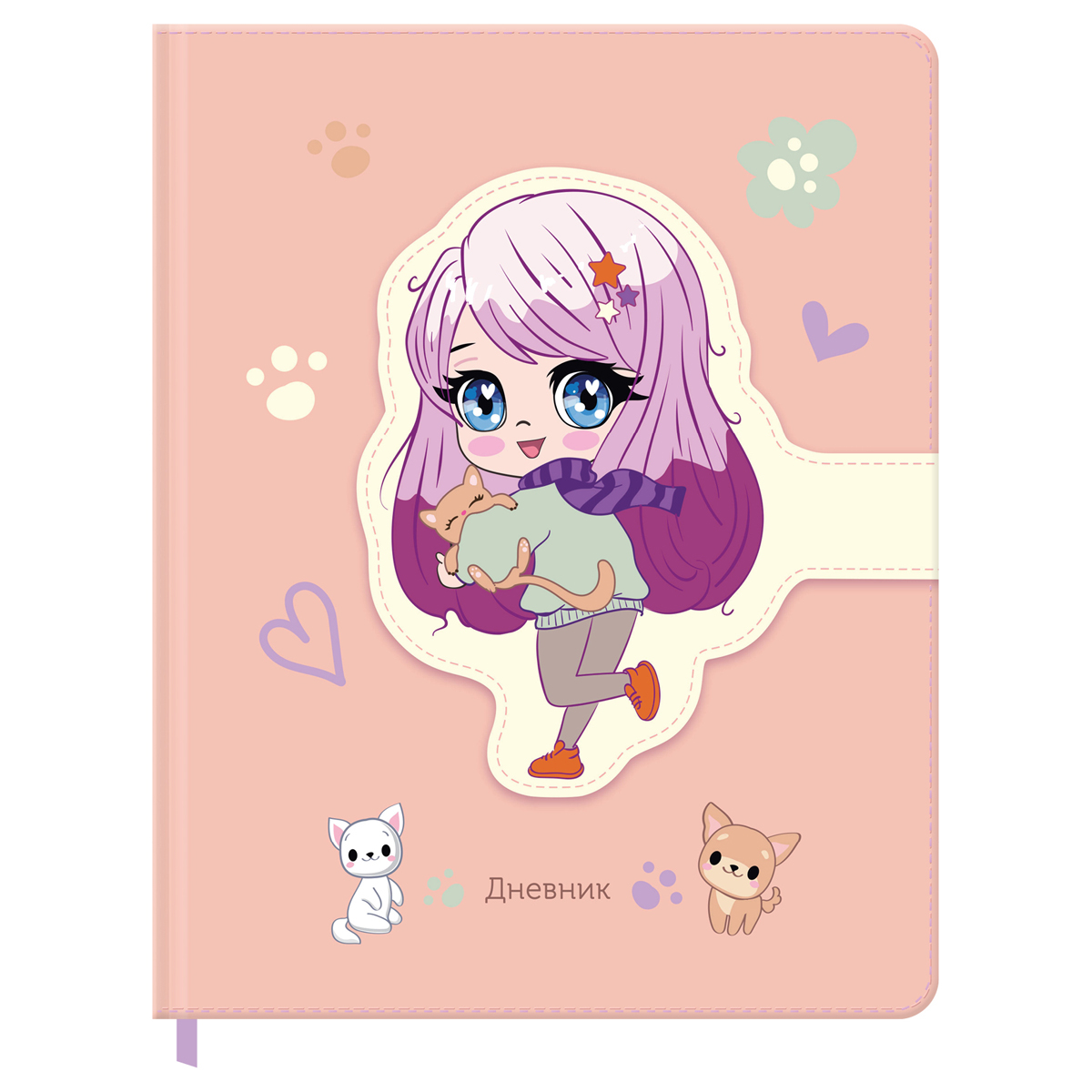 Дневник 1-11 кл. 48л. (твердый) BG "Милые друзья", иск.кожа, печать, фигурный клапан, ляссе
