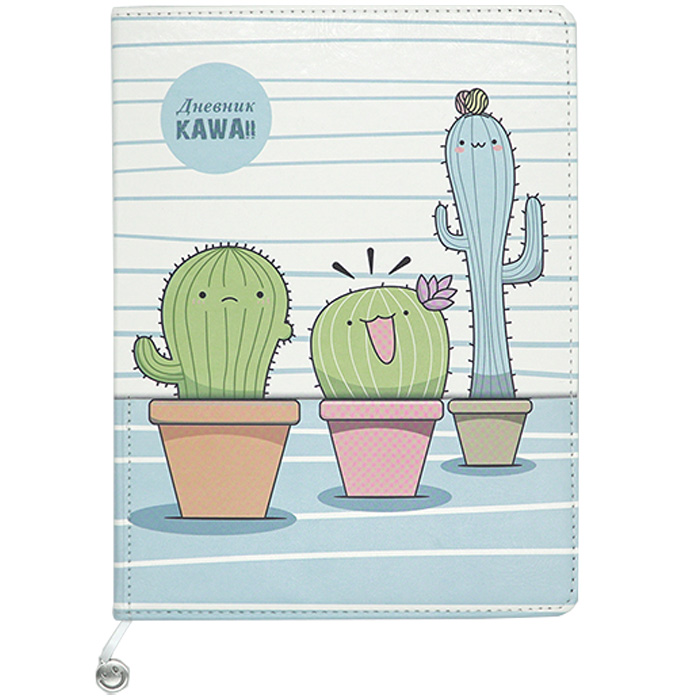 Дневник универсальный, 48 л., мягкий переплёт, обложка - кожзам, с карманом "Карман. Веселые кактус