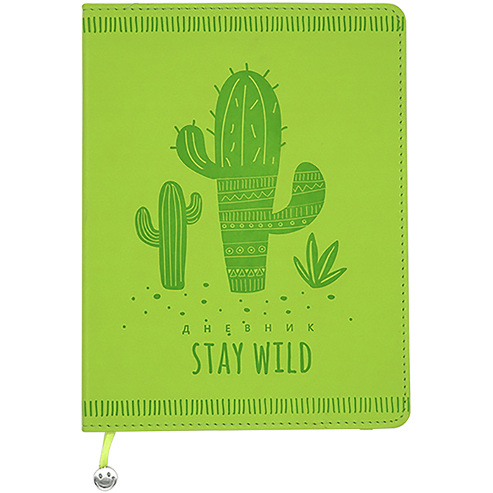 Дневник универсальный, 48 л., мягкий переплёт, обложка - кожзам, тиснение, резинка, "Кактусы"