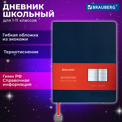 Школьный дневник BRAUBERG выполняет функции журнала регистрации оценок и домашних заданий, полученных на уроках, замечаний по поведению и прилежанию, является средством общения учителей и родителей, а также показателем успеваемости учащихся. Предназначен для учащихся 1-11 классов. Интегральная обложка из экокожи надежно защищает бумагу и долго сохраняет привлекательный внешний вид. Внутренний блок содержит 48 листов и состоит из офсетной белой бумаги плотностью 70 г/м2. В справочном материале собраны основные подсказки для учащихся. Для удобства пользования дневник снабжен закладкой-ляссе.