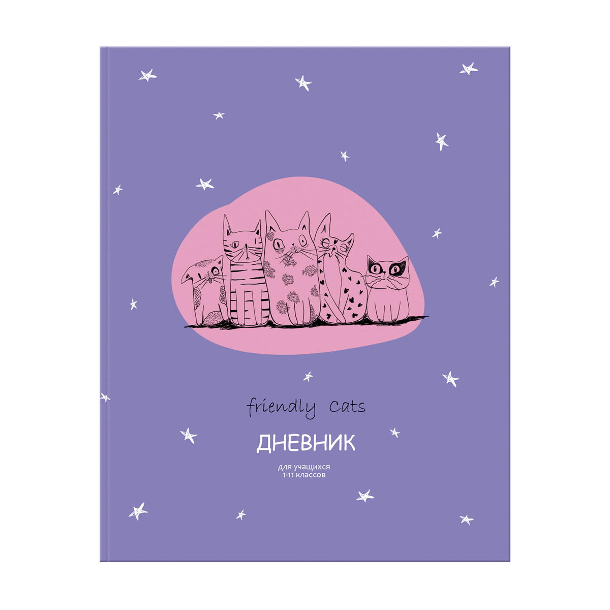 Дневник 1-11 кл. 48л. ЛАЙТ BG "Дружелюбные кошки", матовая ламинация