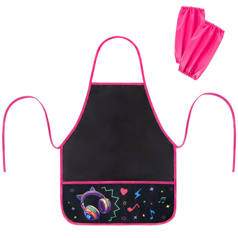 Фартук с нарукавниками для уроков труда BRAUBERG, 3 кармана, 46x54 см, "Headphones", 273643