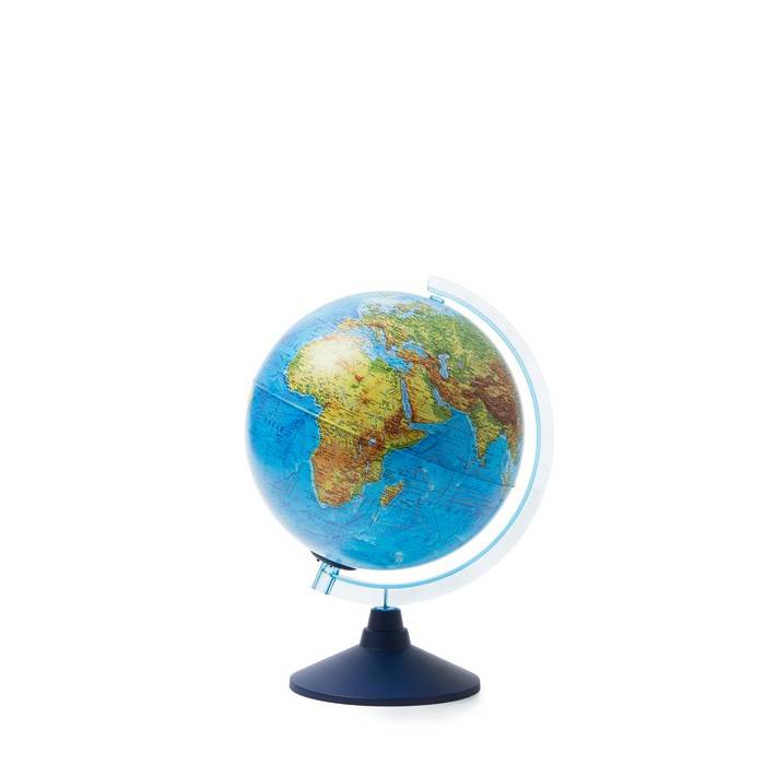 Глобус физический с подсветкой от батареек. Такой глобус станет отличным подарком и незаменимым помощником в учебе школьнику. Изготовлен из пластика c устойчивой настольной подставкой.