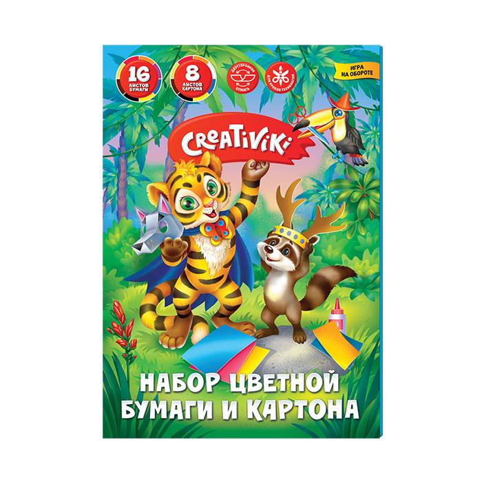 Набор цветной бумаги и картона – это готовое решение для поделок. Теперь самые популярные материалы – немелованный картон и газетную цветную бумагу можно купить сразу. Начиная с простых аппликаций и коллажей, ребенок со временем переходит на объёмные украшения и оригами. С помощью наборов бумаги и картона он с удовольствием сможет осуществить все свои задумки и фантазии. Бумага плотностью 45 г/м2, картон немелованный, 190г/м2.