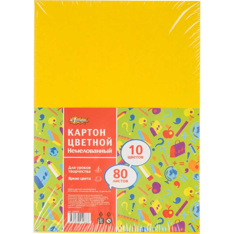 Картон цветной №1School 80л. 10цв. А4 немелов (золото+сереб) Отличник
