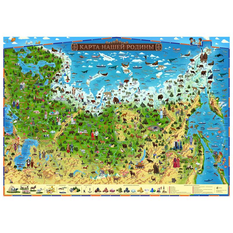 Карта России для детей "Карта нашей Родины" Globen, 1010*690мм, интерактивная, с ламинацией, европод