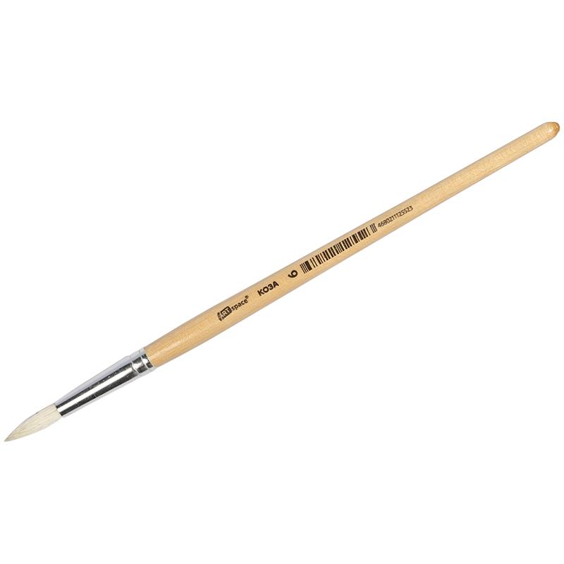 Кисть коза, круглая. С деревянной ручкой покрытой прозрачным лаком. На каждой ручке штрихкод.