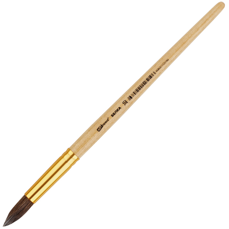 Кисть белка, круглая. С деревянной ручкой покрытой прозрачным лаком. На каждой ручке штрихкод.