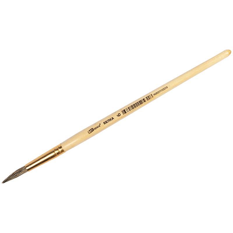 Кисть белка, круглая. С деревянной ручкой покрытой прозрачным лаком. На каждой ручке штрихкод.