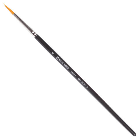 Художественная профессиональная синтетическая кисть BRAUBERG ART "CLASSIC" № 4 предназначена для работ густыми красками: гуашь, акрил, масло, темпера. Идеальна для водорастворимых масляных красок. Изготовлена с применением высококачественной южно-корейской синтетики. Синтетика превосходит щетину в легкости очистки и износостойкости, а упругость ворса и прекрасные впитывающие свойства пучка обеспечивают идеальное сохранение формы мазка.Укороченная ручка из древесины покрыта лаком, что защищает ее от воздействия красок и влаги.Форма пучка - круглая, номер кисти соотвествует реальной ширине пучка в миллиметрах.Упаковка - пакет с европодвесом и картонной подложкой.