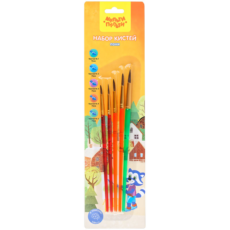 Набор кистей Мульти-Пульти 5шт, пони № 1, 2, 3, 4, 5 круглые, блистер, европодвес