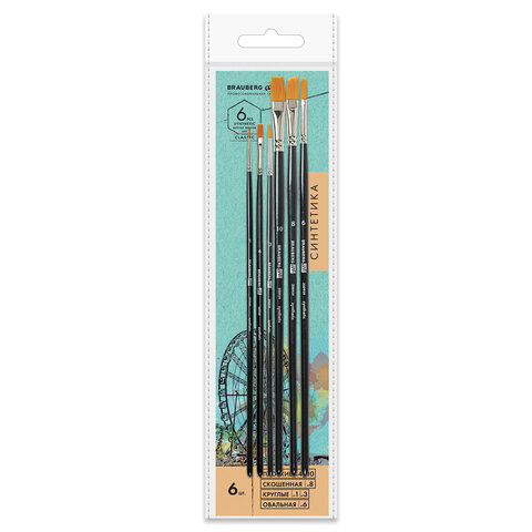 Кисти художественные набор 6 шт., синтетика, BRAUBERG ART CLASSIC, 200959