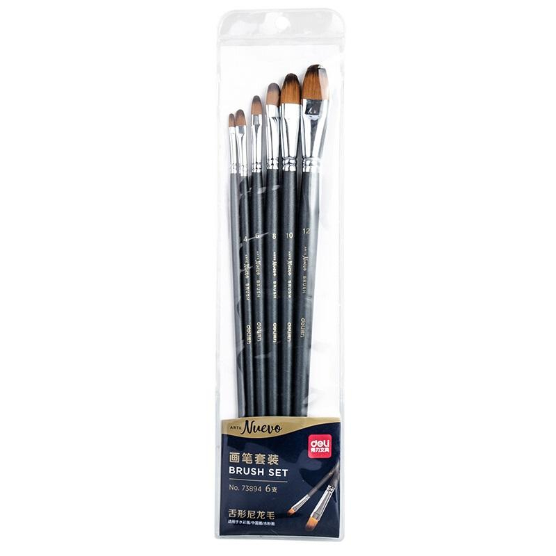 Набор кистей Deli плоская нейлон 6шт., пакет с европодвесом, 73894
