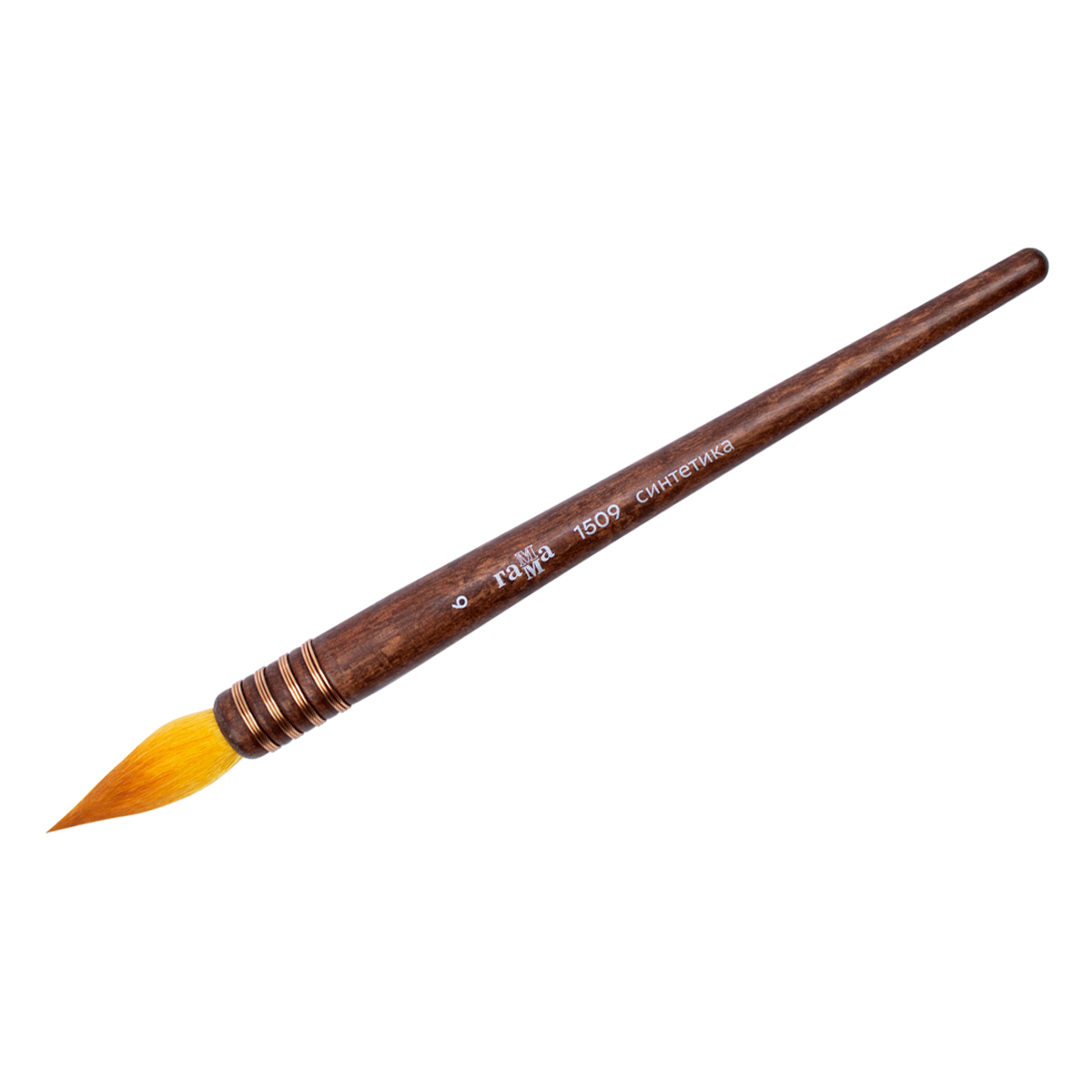 Кисть художественная для каллиграфии Гамма, синтетика круглая, №6, короткая ручка без обоймы