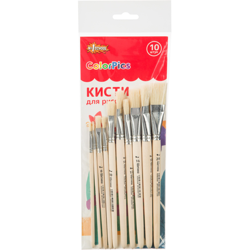 Кисть набор 10 штук, №1School ColorPics щетина №2-20