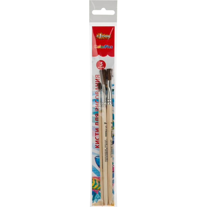 Кисть набор 3 штуки №1 School ColorPics пони №2К,5К,8П