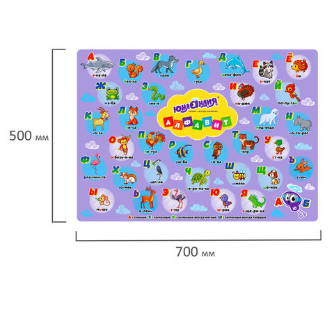 Настольное покрытие для занятий творчеством ЮНЛАНДИЯ, с рисунком, 50х70см, ПВХ, Алфавит, 662457