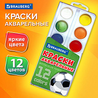 Краски акварельные BRAUBERG 12 цветов "Футбол", медовые, круглые кюветы, 192565