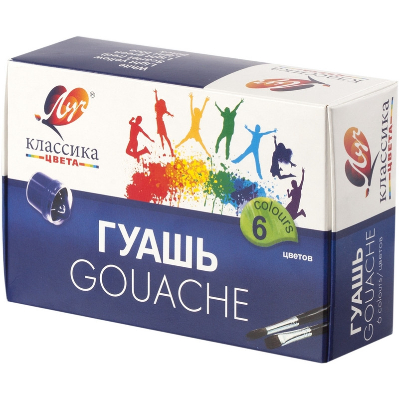 В набор «Классика» входят гуашевые краски 6 цветов. Пластиковые баночки объемом 20 мл в картонной коробке. Гуашь подходит для детского творчества, при необходимости разбавляется водой, безвредна, быстро высыхает, легко смывается с рук.