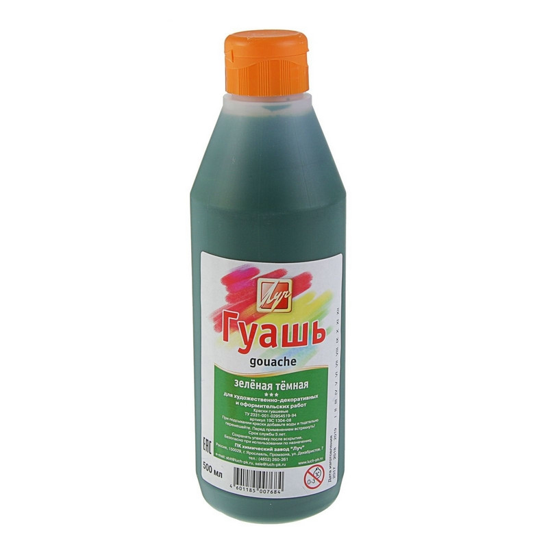 Гуашь Луч зеленая темная 500мл, 19С 1304-08