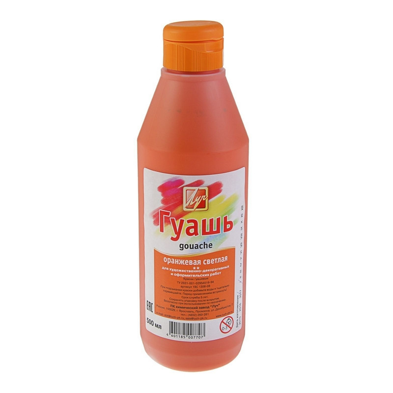 Гуашь Луч оранжевый светлый 500мл, 19С 1306-08