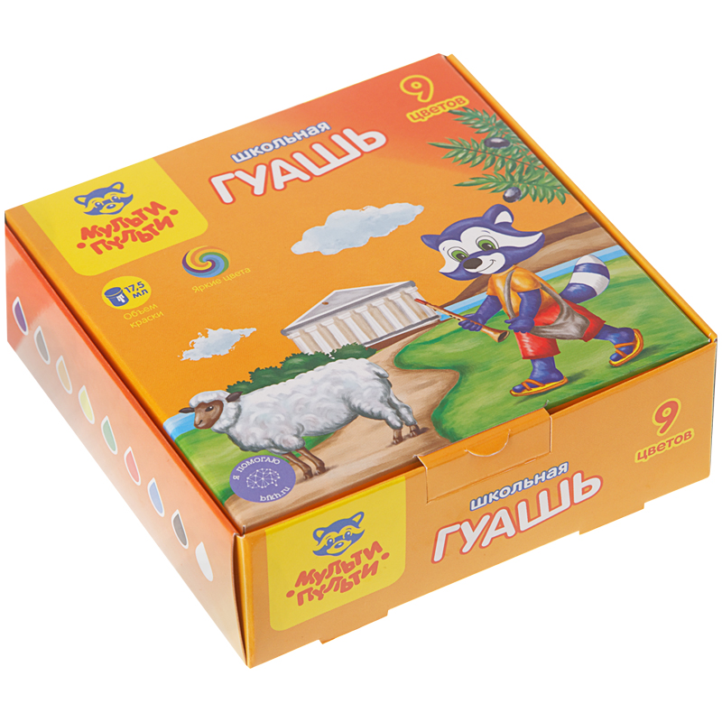 Гуашь Мульти-Пульти "Енот в Греции", 09 цветов, 17,5мл, картон