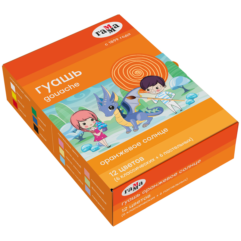 Гуашь Гамма "Оранжевое солнце", 12 цветов (6 пастельн.+ 6 классич.), картон упак.