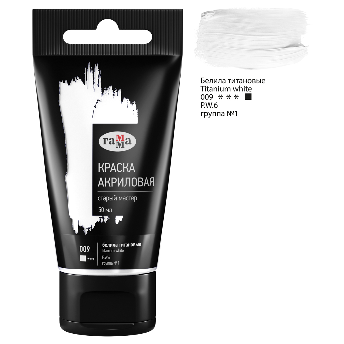 Краска акриловая художественная Гамма "Старый мастер", белила титановые, 50мл, пластик.туба