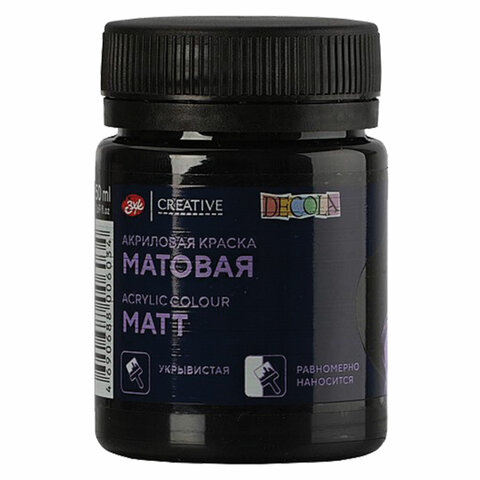 Краска акриловая матовая "Декола", банка 50 мл, черная, 14328810