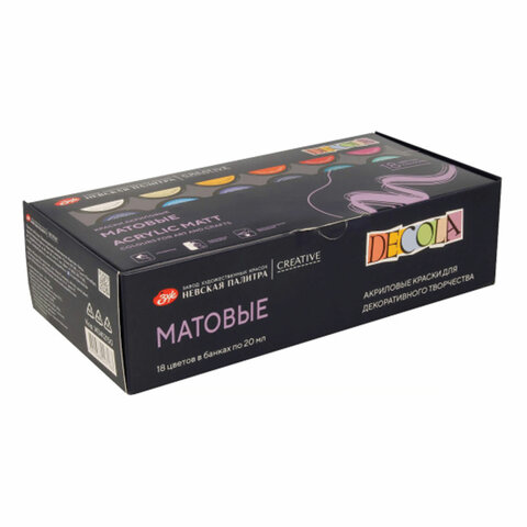 Краски акриловые матовые "Декола", 18 цветов по 20 мл, в банках, 143412150