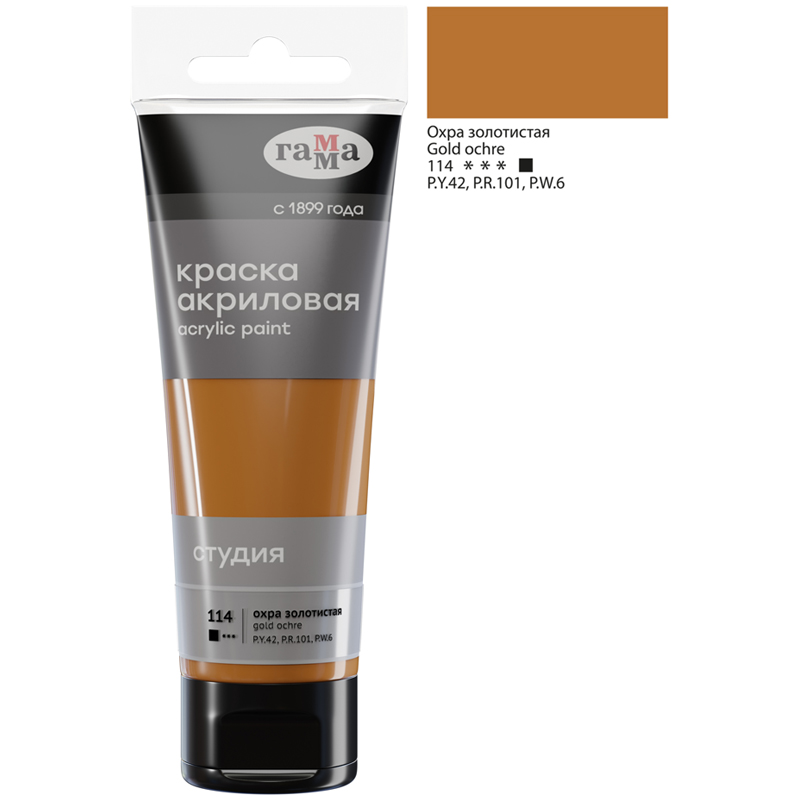 Краска акриловая художественная Гамма "Студия", 75мл, пластиковая туба, охра золотистая