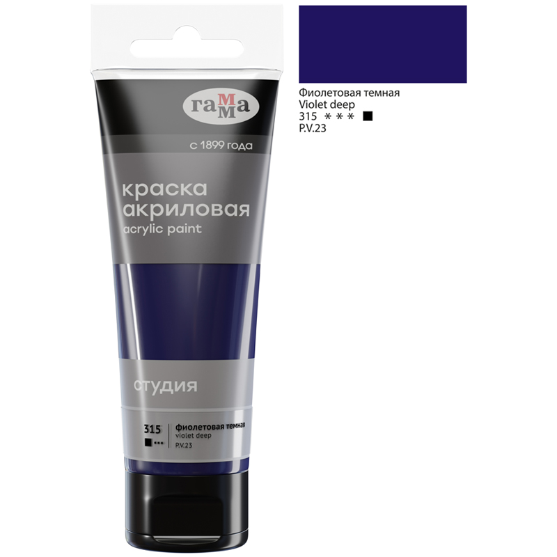 Краска акриловая художественная Гамма "Студия", 75мл, пластиковая туба, фиолетовая темная