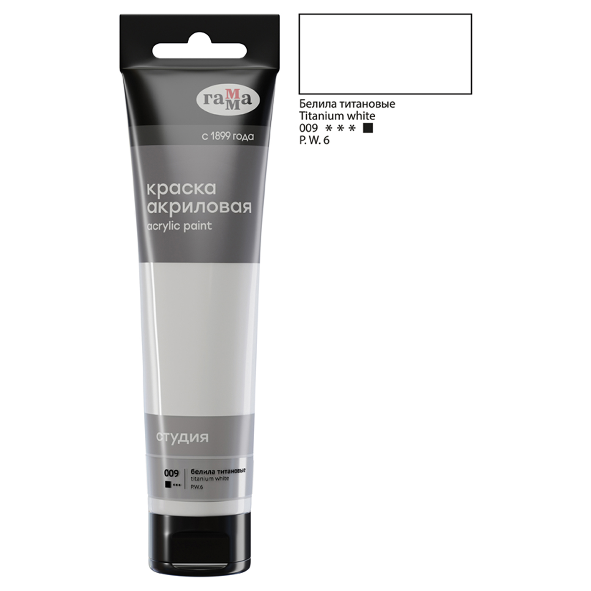 Краска акриловая художественная Гамма "Студия", 110мл, пластиковая туба, белила титановые