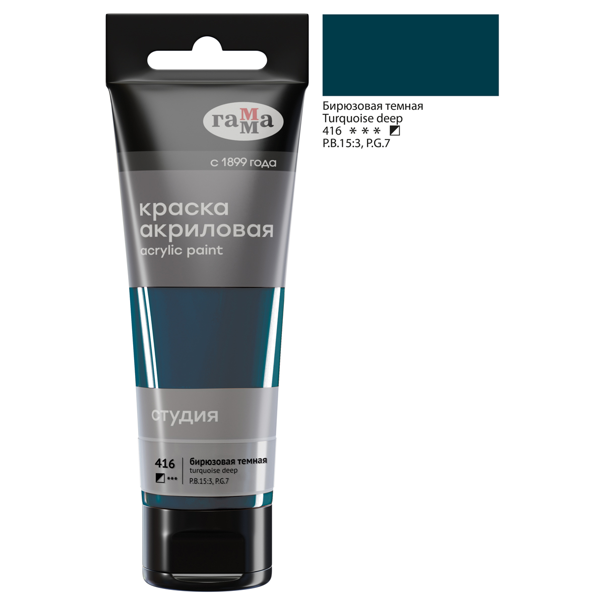 Краска акриловая художественная Гамма "Студия", 75мл, пластиковая туба, бирюзовая темная